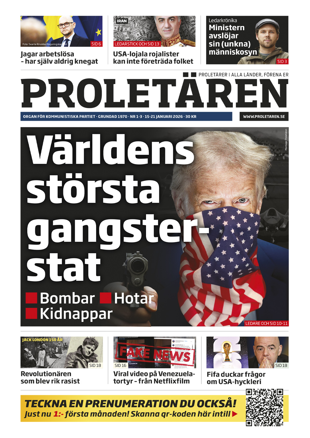 För endast 19 kronor i månaden får du Proletären digitalt i ett halvår. Men inte nog med det. På köpet får du även en stilren Proletären-tygkasse.