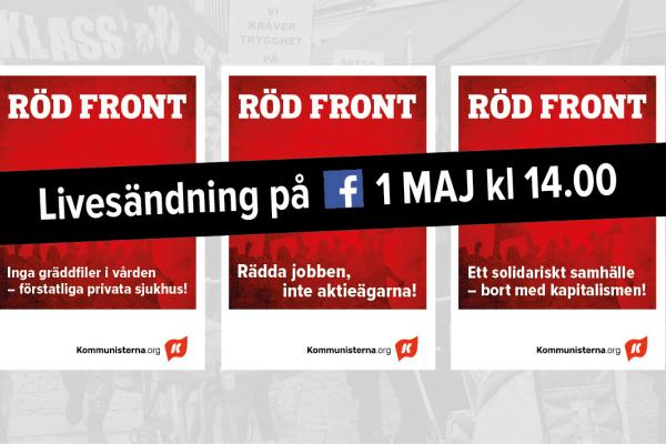Rädda jobben, inte aktieägarna! Inga gräddfiler i vården – förstatliga privata sjukhus! Ett solidariskt samhälle – bort med kapitalismen! Det är parollerna i årets Röd Front.