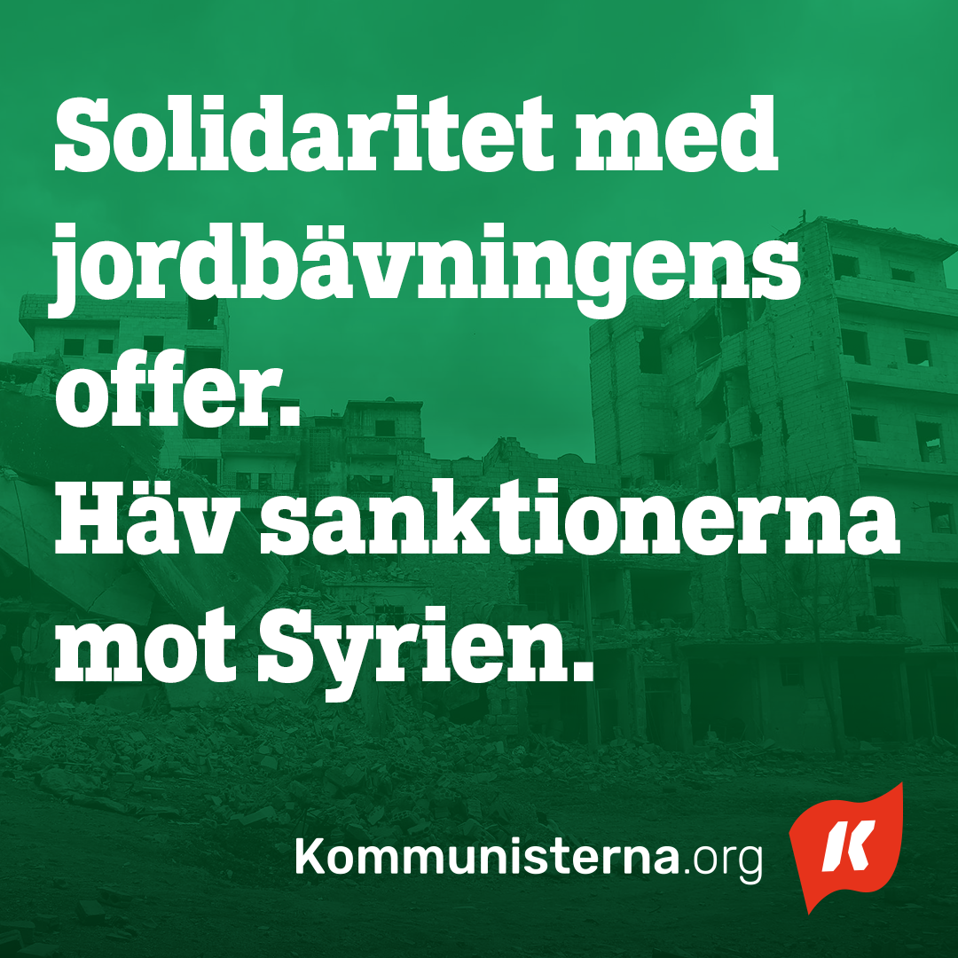Sverige spelar en aktiv roll i att upprätthålla EU:s sanktioner mot det syriska folket. Varje gång sanktionspaketen förnyas skulle Sverige kunna lägga in sitt veto och på det viset göra livet lite lättare för miljoner människor i Syrien som lider brist på bland annat mat, bränsle och medicin på grund av USA:s och EU:s brutala sanktionspolitik.